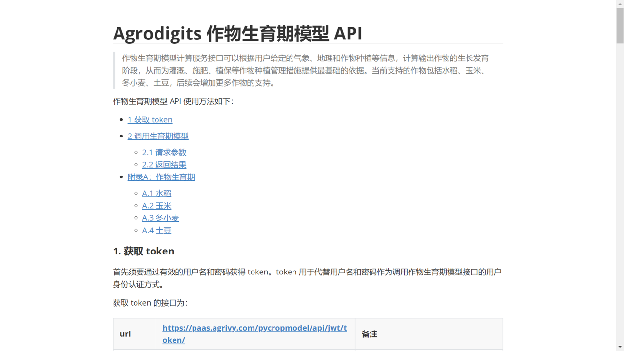作物生育期模型 API