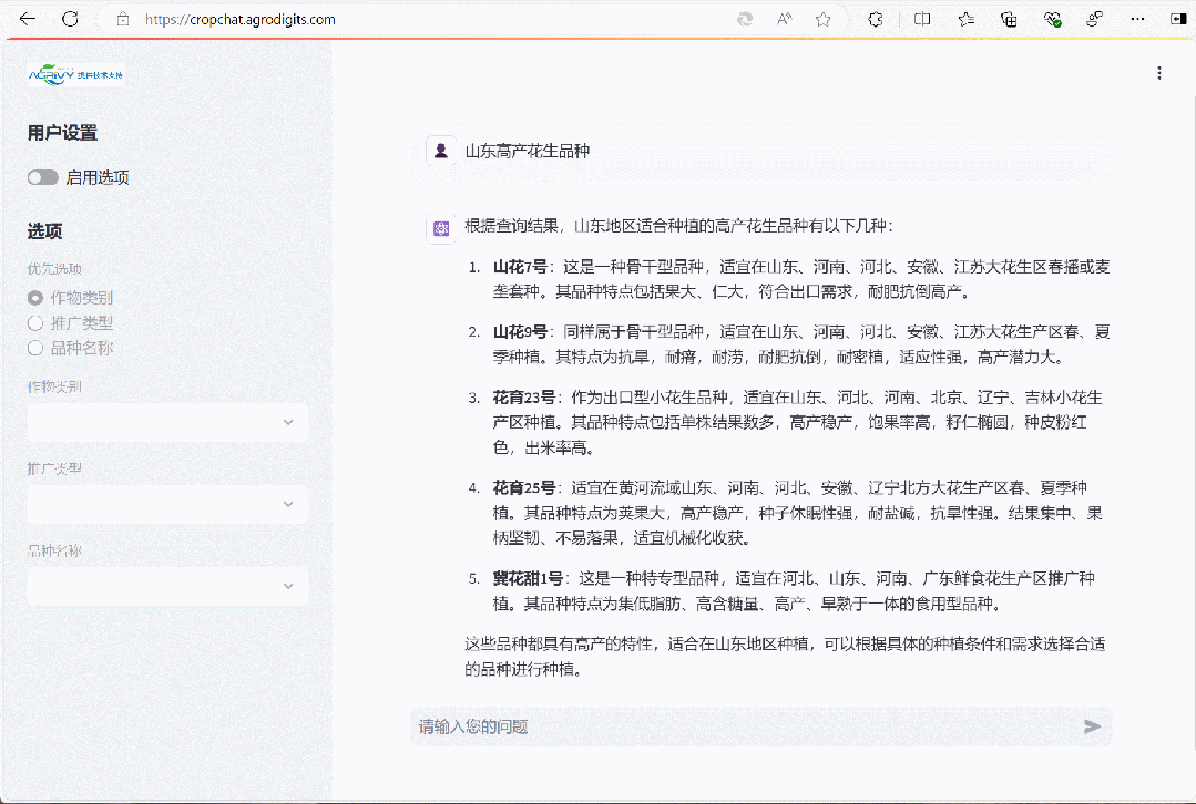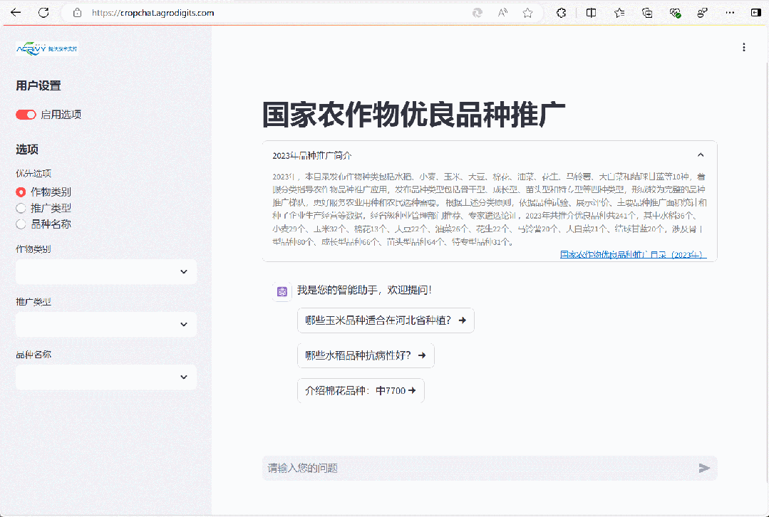 • 以国家农作物优良品种推广目录(2023年)为基础,构建作物品种知识图谱数据库