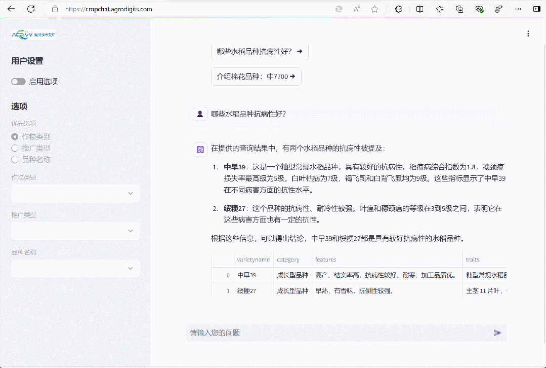 • 利用 GraphRAG 技术,智能助手能够根据用户提供的地理位置、气候条件、土壤类型等信息,推荐最适合种植的作物品种